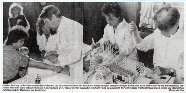 • Bei den bisher festgestellten erhöhten Leber- und Nierenwerten handele es sich nicht um eine akute Vergiftung, teilte die Leiterin des Gesundheitsamtes, Dr. Ingeburg John, mit. Dem Amt selbst stelle sich jetzt die Frage, ob man langfristig chronische Vergiftungen feststellen könnte. Ausdrücklich wurde in diesem Zusammenhang von einem Bürger darauf verwiesen, daß die Klärung dieser Frage eine bedeutende Rolle dafür spielen werde, ob die Betroffenen Prozesse gegen die Verursacher anstrengen werden.