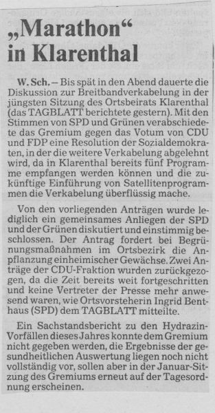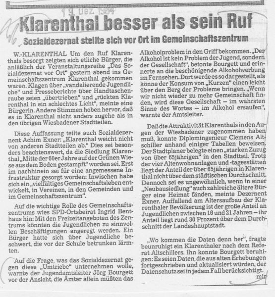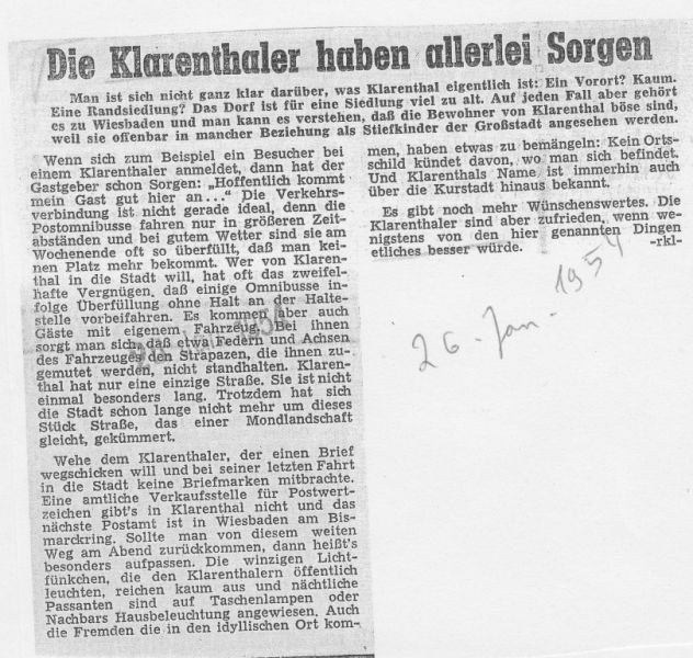 Das Stadtteilarchiv Klarenthal hat mittlerweile über 1400 Zeitungsartikel gesammelt und chronologisch archiviert. In mühsamer Kleinarbeit wurden dabei Zeitungsartikel von Beginn der 50er Jahre bis heute archiviert.